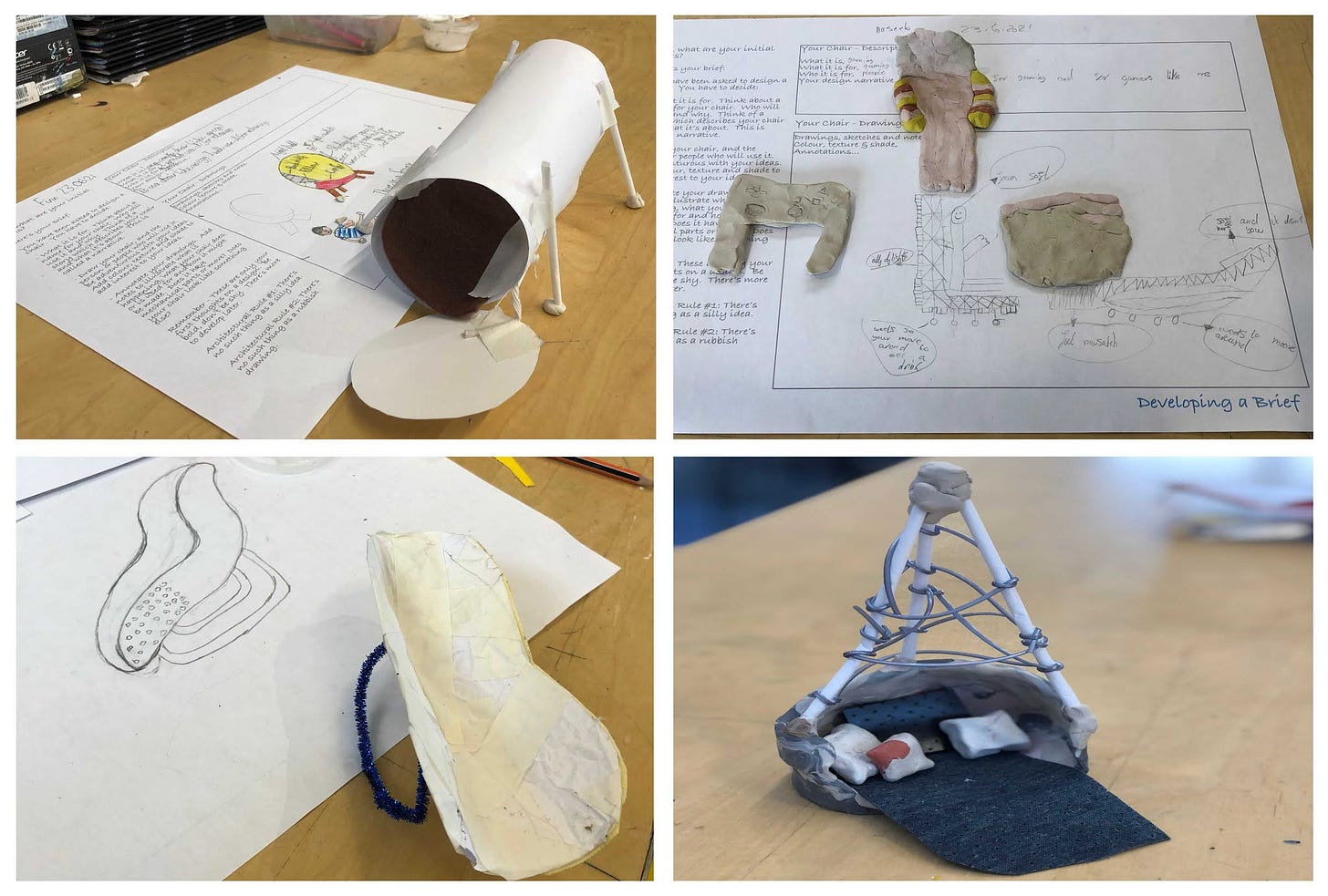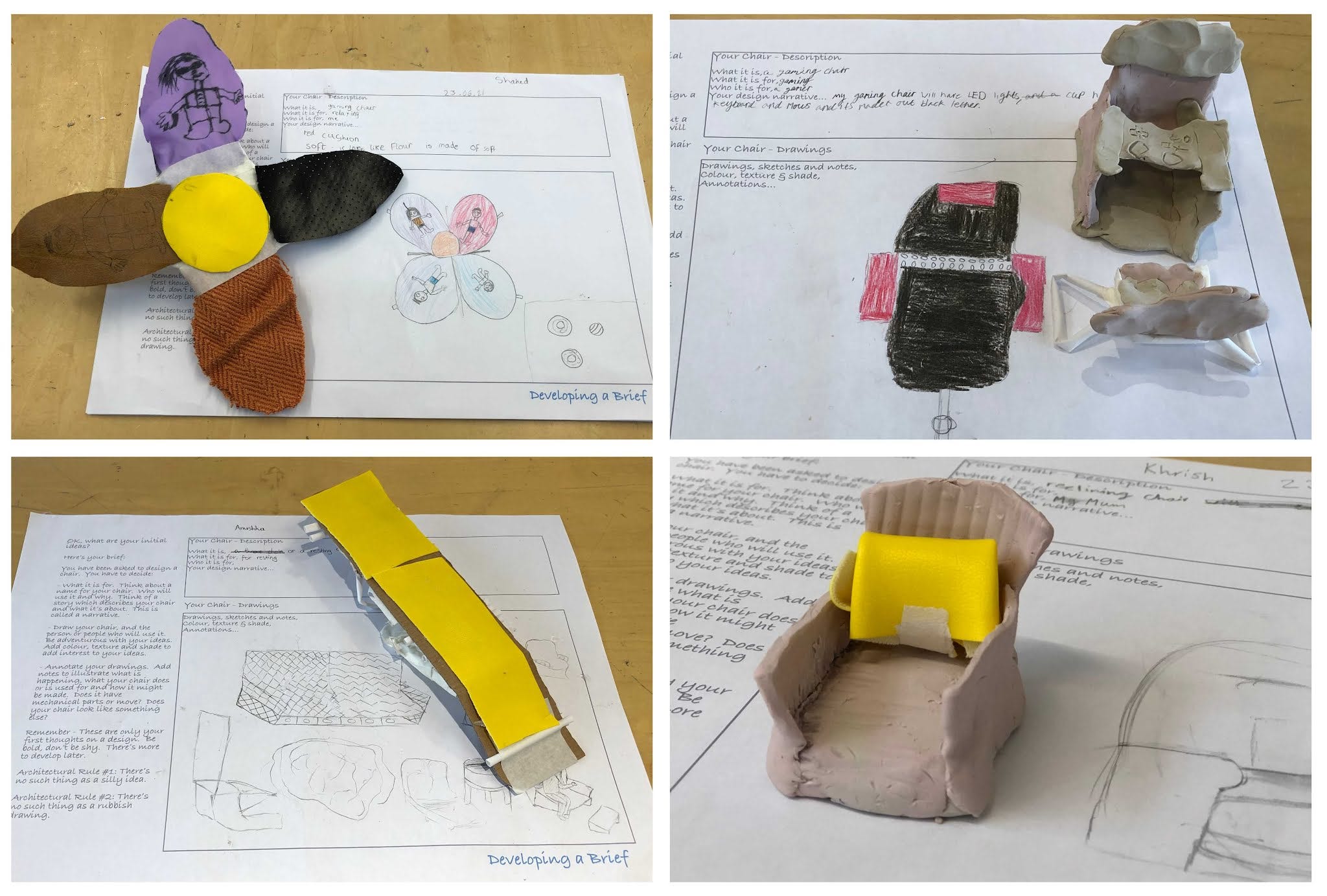 The student’s solutions are fascinating and often heart-warming. Apart from the predicted gaming chairs, some memorable creations from our workshops have included ‘a comfy chair for Mum’, ‘a trampoline chair’, and ‘a chair to meet friends on’.