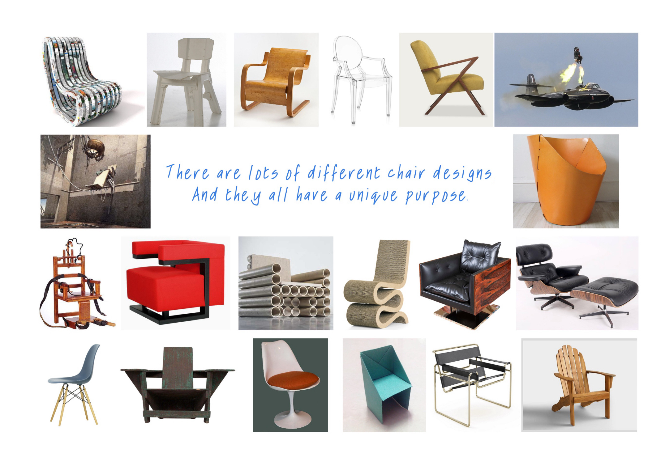 So here’s some questions for you to ponder today: If you could design your perfect chair, who would it be for, what would it look like, what would it be made from and what would it be called?